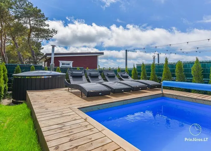 Oprócz dostępu do takich atrakcji przyrodniczych jak Plaża w Połądze, w około 4 km, Willa Namas Su Privaciu Baseinu Ir Jacuzzi! Połąga oferuje basen. Willa dysponuje tarasem z widokiem na basen oraz basenem.